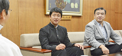 この日、市役所を訪れたのは、小西選手と父親の智之さんの2人。出場報告を受けた大木市長は「このような大きな大会に出られるのは貴重なこと。力を出し切れるように頑張ってください」と激励した。