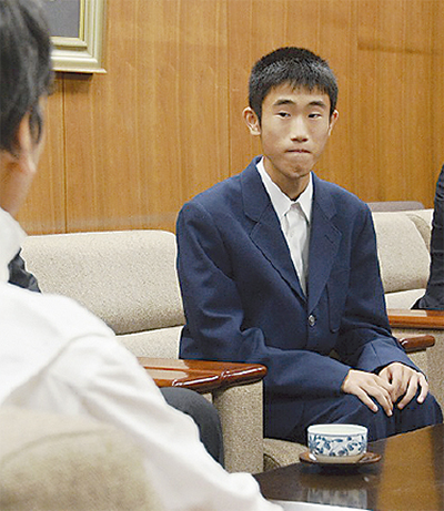 大和市立光丘中学校2年生の粟屋尚貴さん(14歳)が10月17日、大和市役所を訪問。大木哲市長に「第16回全国障害者スポーツ大会(愛称:希望郷いわて大会)」陸上競技の部への出場を報告した。