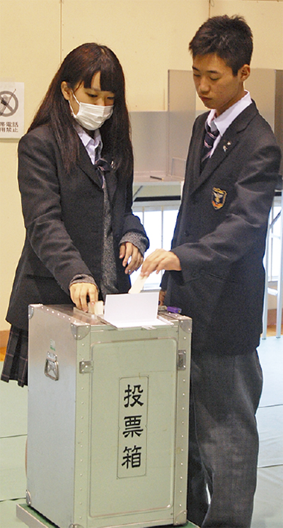 投票が始まると、生徒たちは静寂に包まれた投票所でスムーズに一票と投じていた。井上茜さん(高2)は「緊張したが、気軽にできた。よく若者の投票率が低いといわれるので、実際の選挙でも投票に行きたい」と話した。