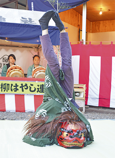 2017年の元日、上草柳の熊野神社の境内で「上草柳はやし連」(井上貞夫連長)の鉦や太鼓、笛などのお囃子や獅子舞が披露され、初詣客で賑わう境内に彩りを添えた。