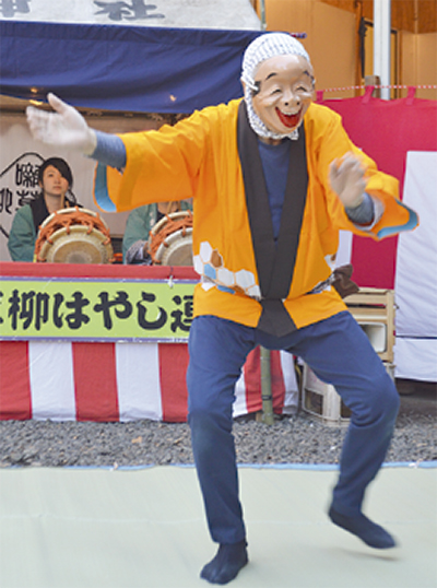 ひょっとこ踊りを担当する井上さんは「3年間は続けないと思うような形にならないね」と話す。今では自治会の行事などにはなくてはならない同会。同神社では10年前から元日に演舞が披露されており、目当ての参拝客も増えている。