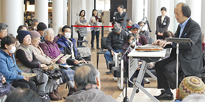 映画『第三の男』のテーマを演奏したことでも知られる南ドイツの民族楽器「ツィター」。硬い音と柔らかい音を使い分けて演奏でき、まるで合奏をしているように聞こえる点に特徴がある。今回は、ツィター奏者の河野直人さんがホワイトデーにふさわしいロマンチックな雰囲気の曲を披露し、癒しの音を求めて多くの人が詰めかけた。