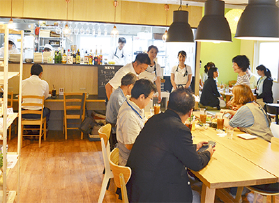オープン前日には、関係者など向けのお披露目会が催された。地域住民のほか、近隣の高齢者や障害者支援施設のスタッフなども同店を訪れ、食事をしながら今後の利用や連携などについて会話を交わしていた。