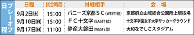 プレーオフは9月2日(土)にバニーズ京都SCと、9月10日(日)にFC十文字と、それぞれアウェーで戦う。昇格をかけた大一番となることが予想される最終戦は17日(日)、ホームで静岡産業大学磐田ボニータを迎え撃つ。藤巻監督は「ここからが本番」と気を引き締めた。会場は大和なでしこスタジアム(上草柳1の1の1、大和駅徒歩5分)で午前11時キックオフ。観戦無料。