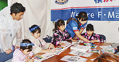 当日は、試合会場であるスタジアム東側イベント会場内に市のブースが設置され、ブース内では女子サッカー・大和シルフィードの紹介展示のほか、ヤマトンとF・マリノスのキャラクター「マリノスケ」の塗り絵なども行われた。