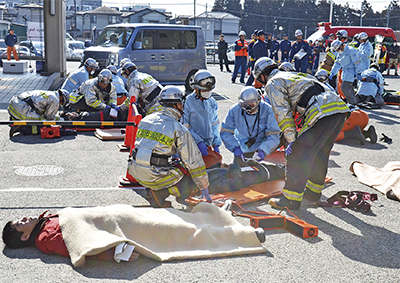 大和市消防本部は2月9日、本部内の訓練センター場を使い、多数傷病者発生事故対応訓練を実施した。