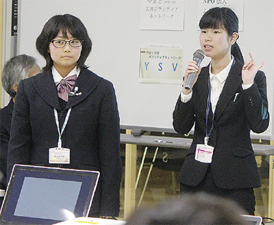 講演には50人以上が参加。一般聴講者のほか、地元の柏木学園高、大和東高、横浜の武相高の高校生なども顔を揃えた。講演後に高校生たちは添田さん、武山さんと意見交換をした。