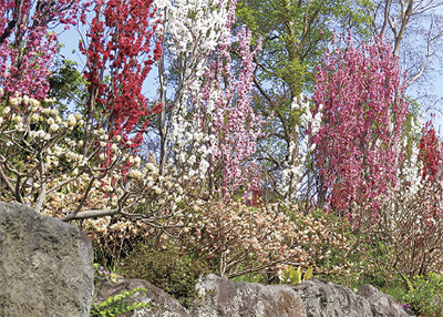 「花のリレー」が始まり色とりどりに彩られていく境内は、まさに春の世界。ひとたび足を踏み入れれば、喧噪も時間も忘れて心まで春色に染まることだろう。