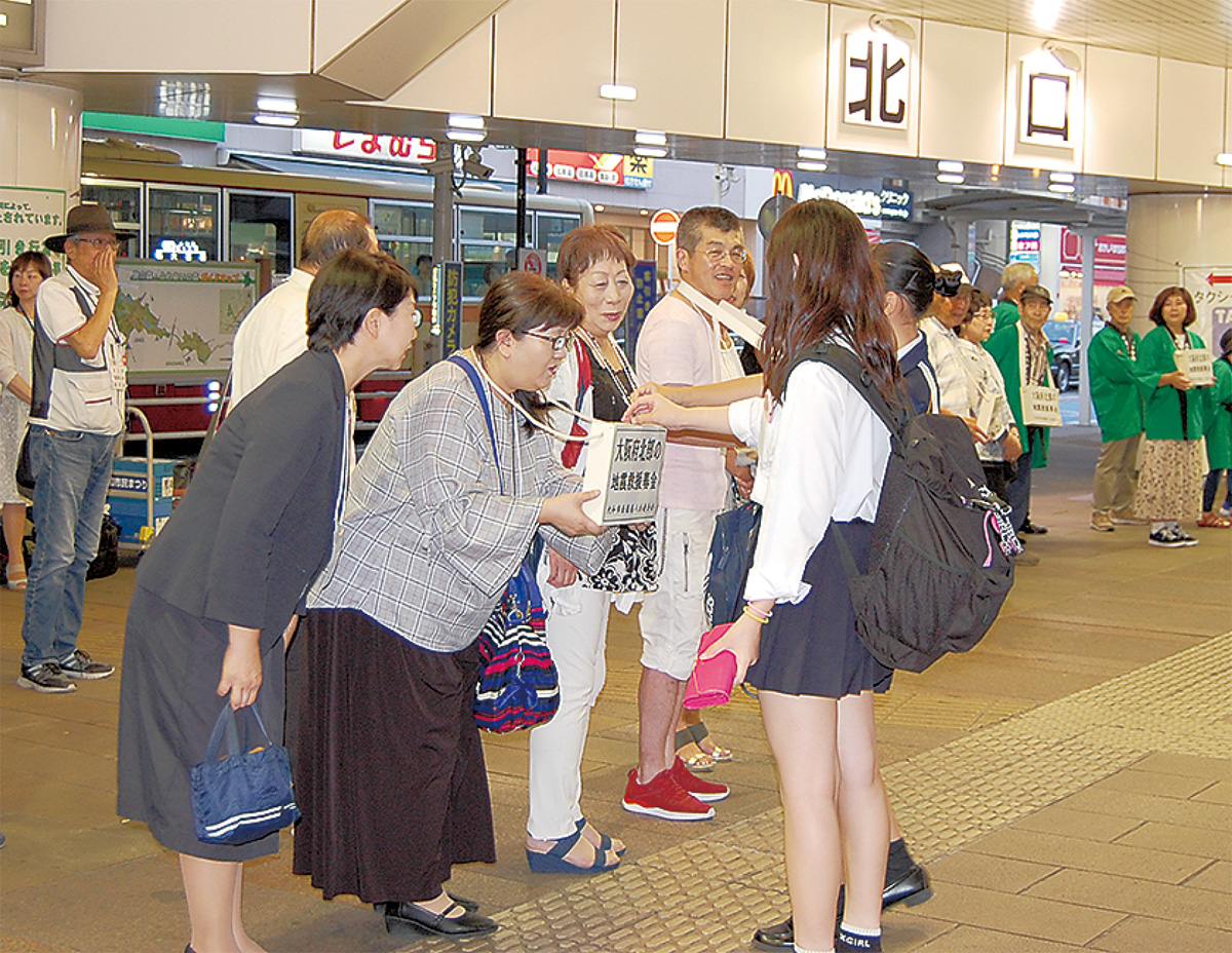 大阪府北部で6月18日に発生した地震の被災地支援のため、発災4日後の22日、大和市全国県人会連合会(駒形光祥会長)が大和駅前で義援金の募金活動を行った。