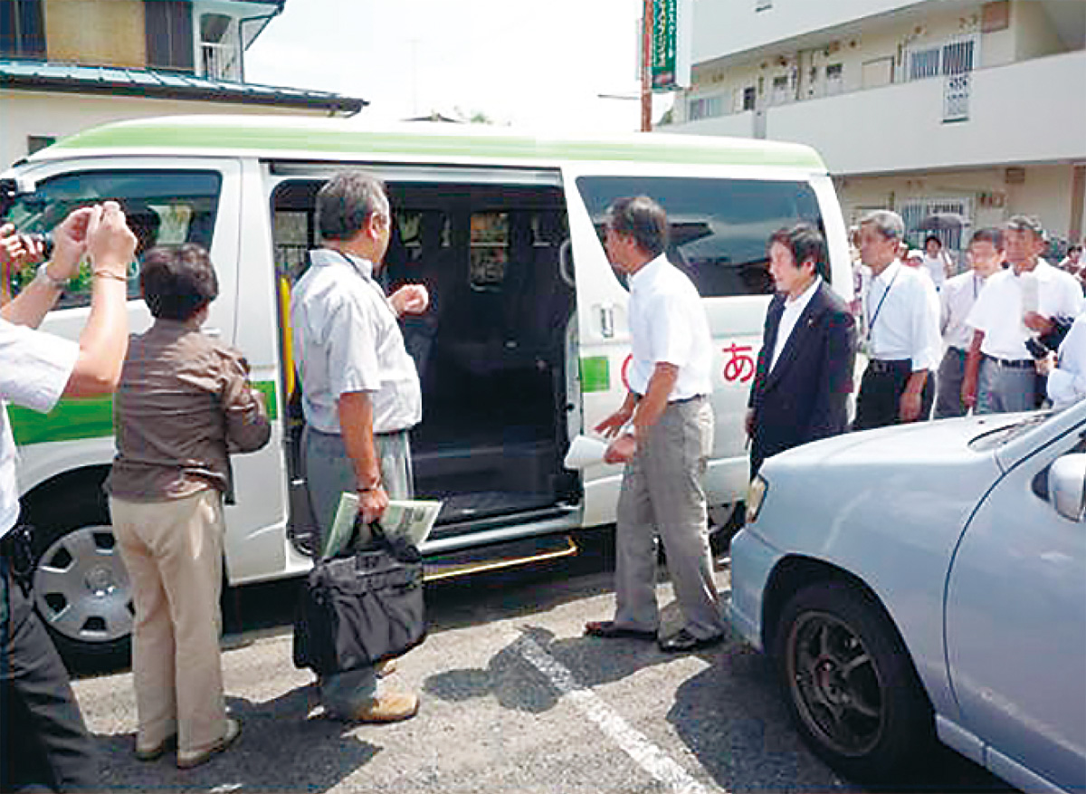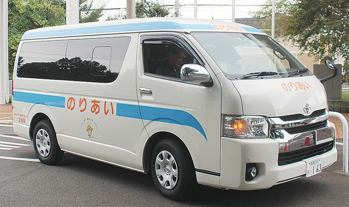 『のりあい』は、西鶴間・上草柳地区(9自治会・約2400世帯)の住民が中心となり、2010年から本格運行をはじめた乗合バス。大和市と協同事業で、滝沢代表、三澤金一郎副代表ほか、運転担当13人とバス添乗担当など25人がボランティアで運行管理している。運転手の中には、かつて大型トラックのドライバーだった人も。バスは10人乗りのワゴン車で、運転手のほか利用者の安全確認やコミュニケーション役として添乗者が同乗する。入澤牧子事務局長は「路線バスの補完だけでなく地域のコミュニティを作るきっかけにしたかった」とその理由を話す。利用者の中には「この歳で親友ができた」と喜ぶ高齢者もいるという。