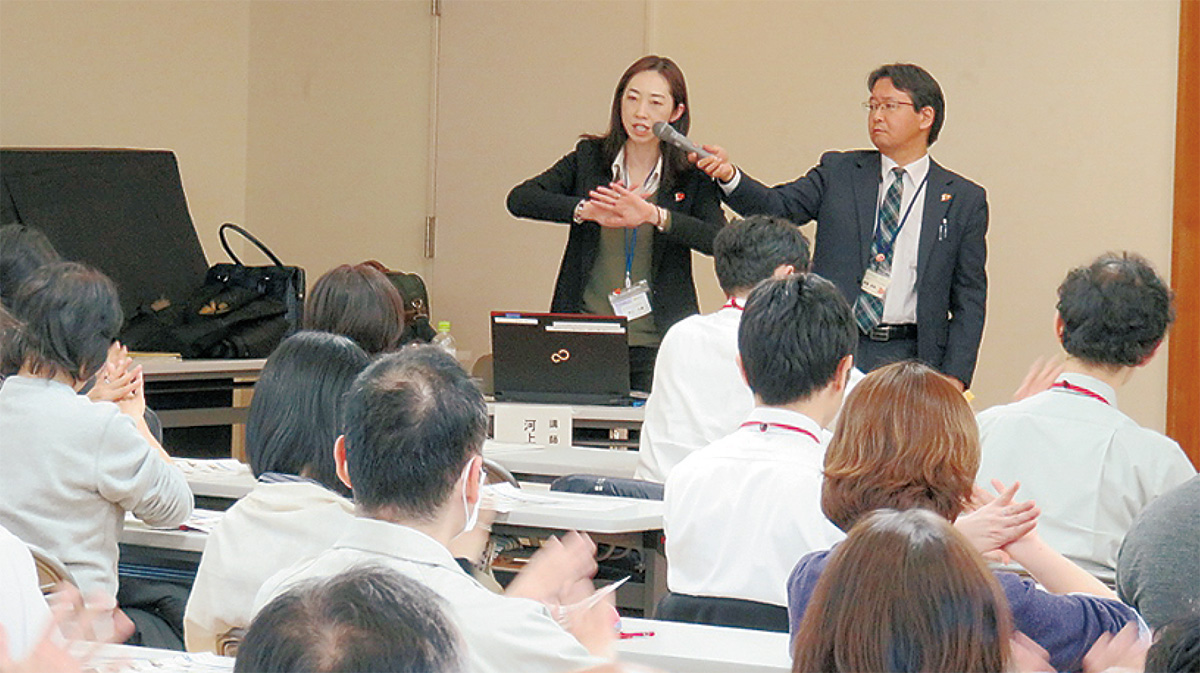 市では同日、「あいサポーター」を養成する市職員向けの研修を実施。障害の種類や、それぞれに合ったサポートの方法、簡単な手話を学んだ。今後も市職員や市民向けに研修を年5〜6回実施する予定で、市内では年間200人程度の「あいサポーター」が誕生する見込み。
