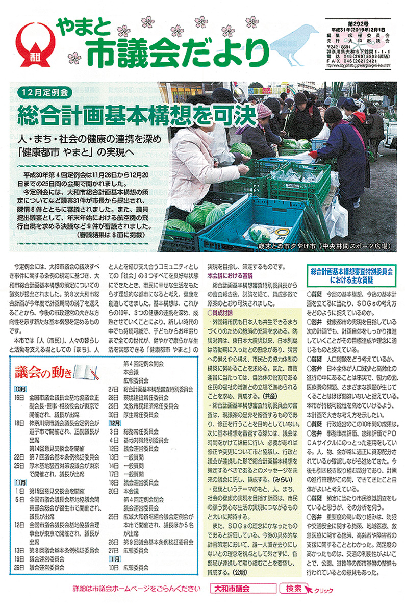 名称は「やまとし議会だより」で創刊したが、第2号から「大和市議会だより」と大和市が漢字に。現在の「やまと市議会だより」となったのは62号から(60、61号のみ創刊号と同じ表記)。