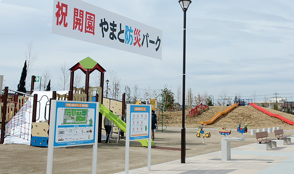 市内南林間6丁目の農林水産省横浜防疫所大和圃場跡地に整備していた「やまと防災パーク」が開園した=写真上。3月10日には開園を祝う式典が行われ、テープカットや消防隊による消防演技が披露された。