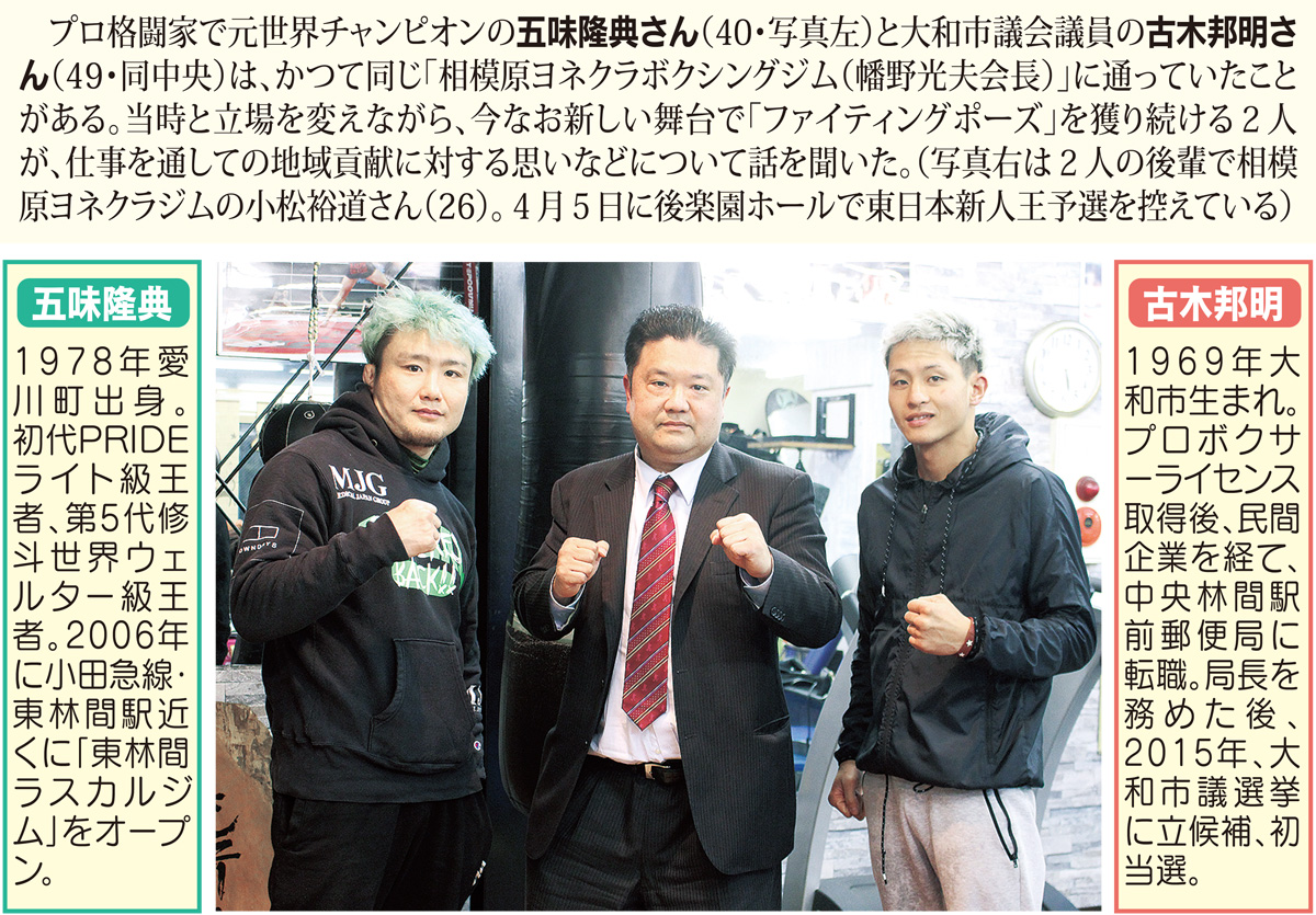 五味「ボクサー時代に培った闘志で大和市を中心に神奈川を盛り上げてください。また子どもたちがスポーツに触れやすい、親しみやすい環境を少しでも作ってもらえたらいいですね」