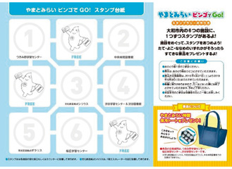 スタンプラリーは、「シリウス」、「ポラリス」、中央林間図書館、渋谷図書館・渋谷学習センター、つきみ野、桜丘の各学習センターの6カ所にあるスタンプを、マス状の専用台紙に2つ以上集め列を揃えるというもの。達成者には特製保冷トートがプレゼントされる。