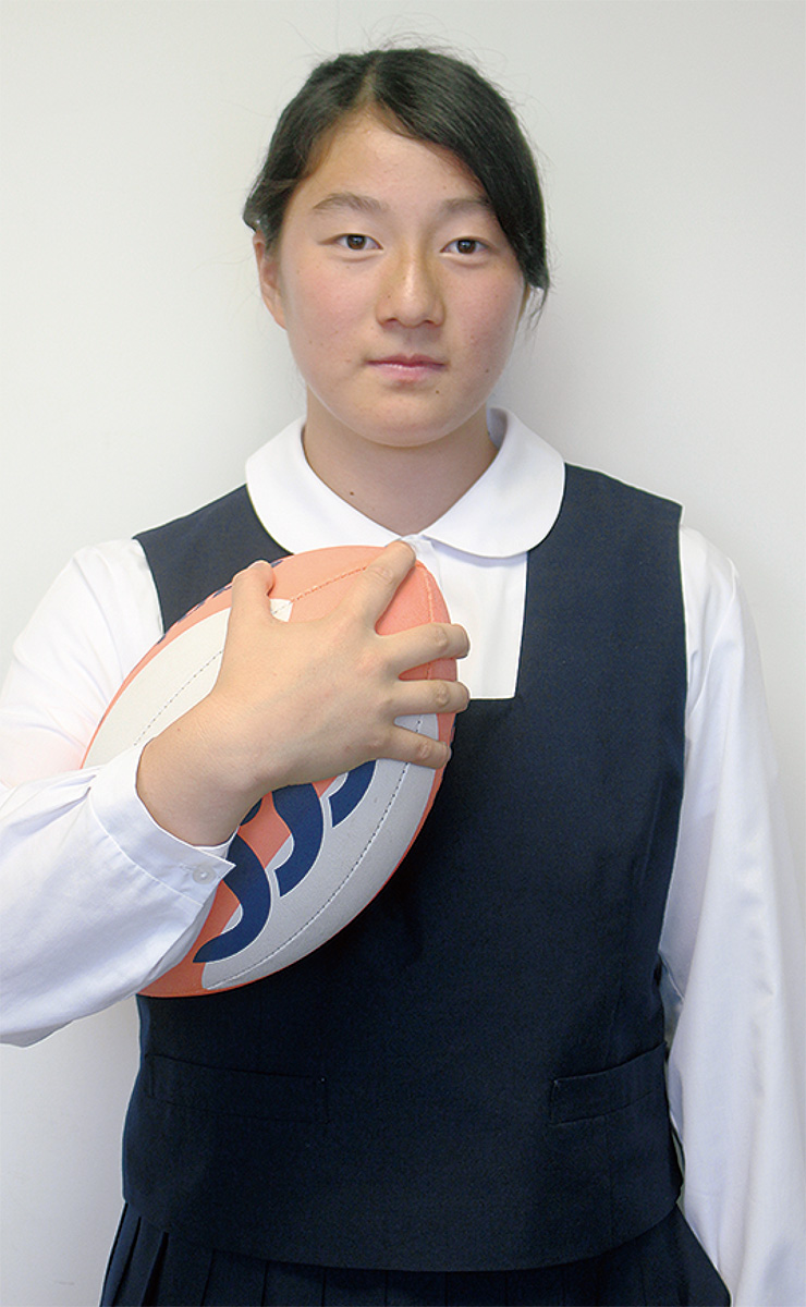 鶴間中学校3年生の松田向日葵(ひまわり)さんが、女子7人制ラグビー(セブンズ)のユース世代の教化・育成を目的にしたアカデミーメンバーに、神奈川県から唯一選ばれた。13人のメンバーの中で中学生は僅か4人の狭き門。昨年末から3度のテストを経てのメンバー選出に「プレッシャーあったので、嬉しかった」と微笑んだ。