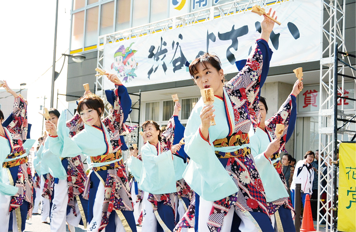 今年で10回目を数える「渋谷よさこい」は、高座渋谷地域の魅力をさらに高めようと、渋谷よさこい実行委員会が主催している。市内の5チームを含む30チームが参加。県内はもとより東京都内、静岡県などから、勇壮な演舞と華麗な衣装を披露しに訪れる。また幼稚園の鼓笛部や地元のキッズダンスチームもよさこい特別サポーターとして、祭りを盛り上げる。