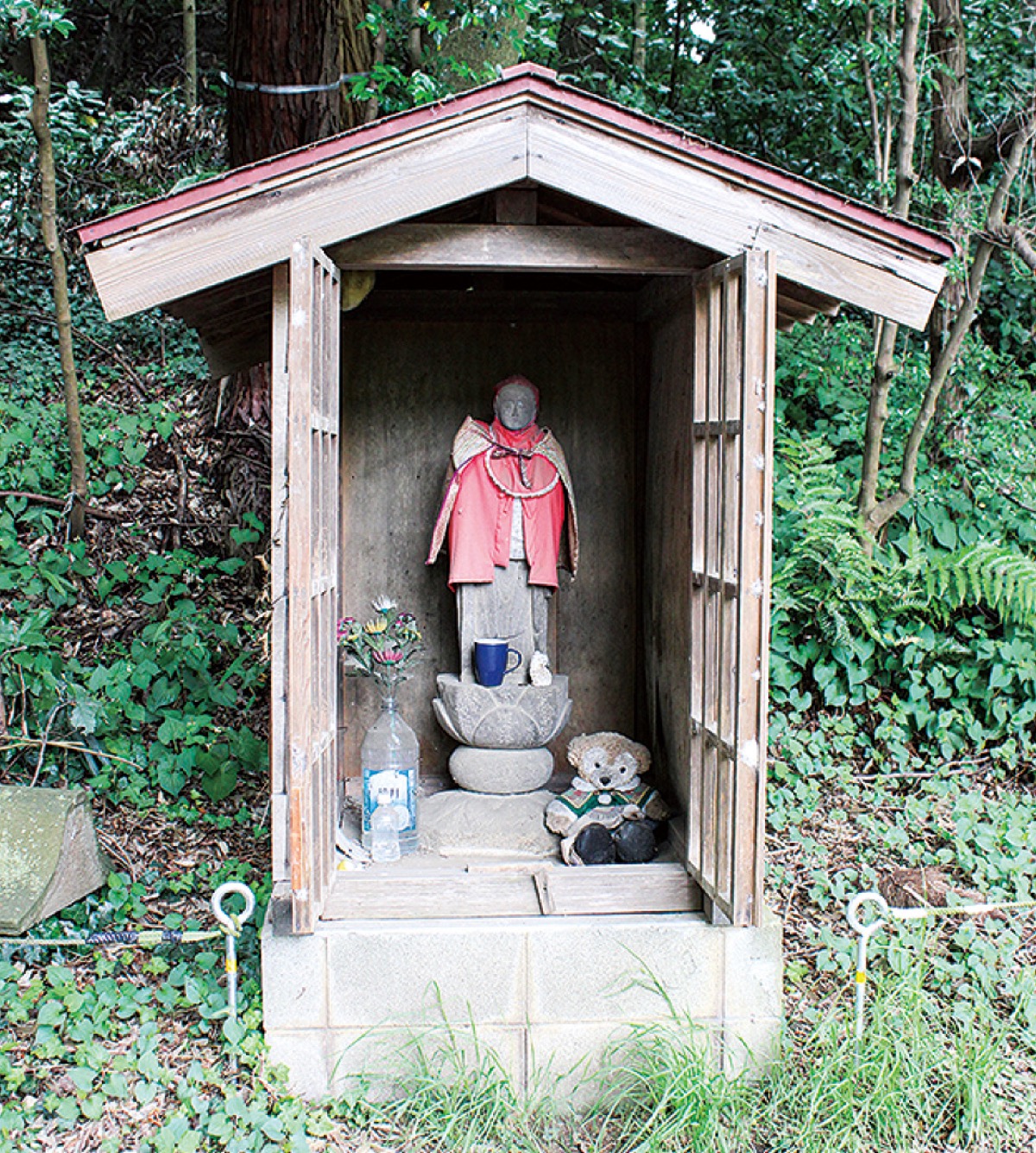 通りに面した林の端には、江戸時代に建立されたとされる祠に地蔵尊が祭られている。地蔵尊に積まれた石を借りてイボをなでるとイボが取れたとされ、「イボ取り地蔵」と呼ばれているとか。イボが取れた人は、引地川の川底から綺麗な石を拾い、礼としてかえしたという。【参考文献/大和市教育委員会『大和市の民間信仰』、泉の森なんでも情報館No.8】