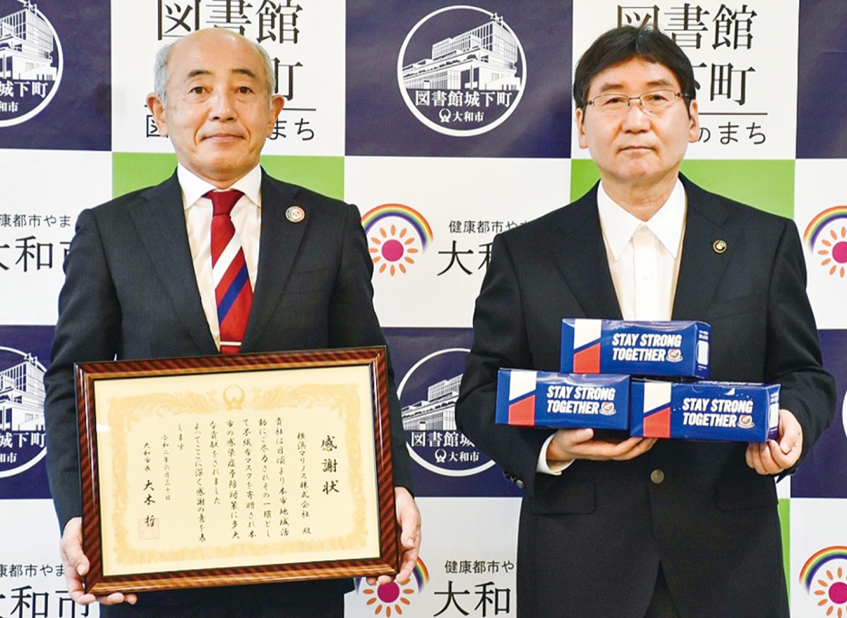 サッカーJ1リーグに所属する横浜F・マリノスから6月30日、大和市に不織布マスク1万5000枚が寄贈された。