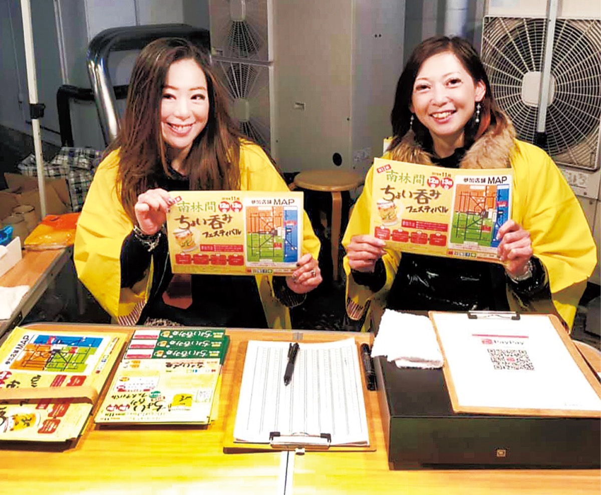3枚つづりの「ちょい呑み券」を購入し、1枚につき1軒で「ちょい呑みセット」が楽しめるもので、昨年は南林間駅周辺の28店舗が参加。約2000人が来場し賑わいを見せていた。