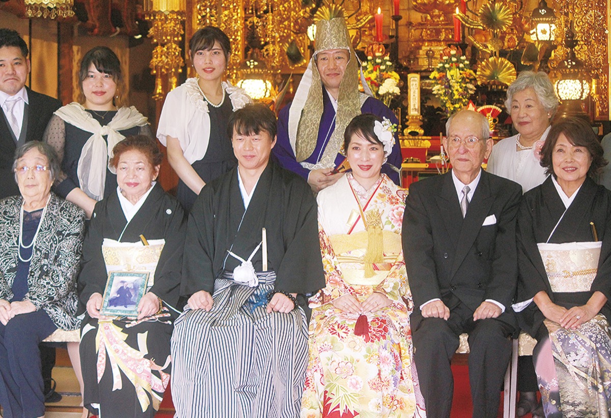 同寺では先月、結納の直後に100歳で大往生した元子さんの伯父の葬式が営まれたばかり。「結婚式を楽しみにしてくれていたので、見守ってくれたと思う」と元子さんはしみじみ語った。若くして父を亡くした和裕さんも「父には長男として心配をかけた。ご先祖様と一緒に集まってくれ、報告ができてよかった」とほほ笑んだ。