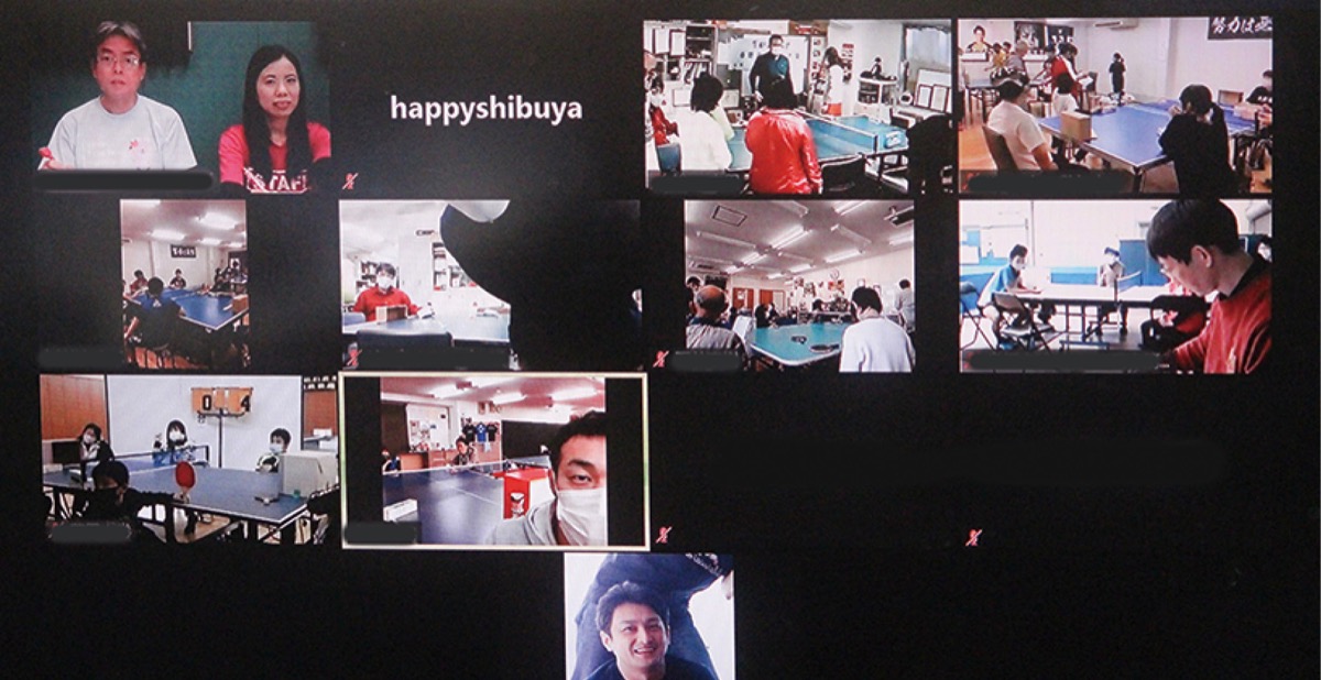 大会には、ハッピー渋谷を始め、全国で卓球療法を実施している北海道・帯広や大阪、静岡、仙台、鳥栖など全国8つの介護施設などが参加。オンラインで各会場をつないだ。