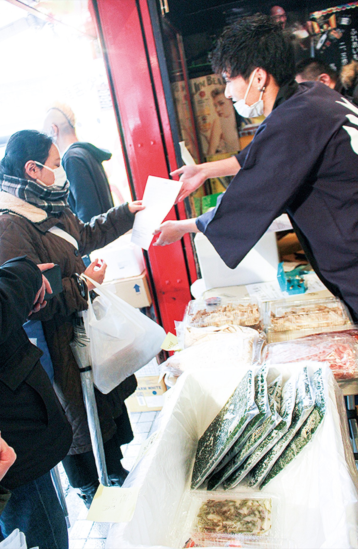 「取引業者は個人事業主も多く、少しでも役に立てば」と、霜田代表が、同社に水産加工品などを卸す横浜「魚心」の見上由幸代表に声をかけ、急遽スタート。さらにフェイスブック「神奈川やまと大すき隊」に投稿して告知。翌週の23日には大和駅前「ボノボノ」の前に行列ができた。