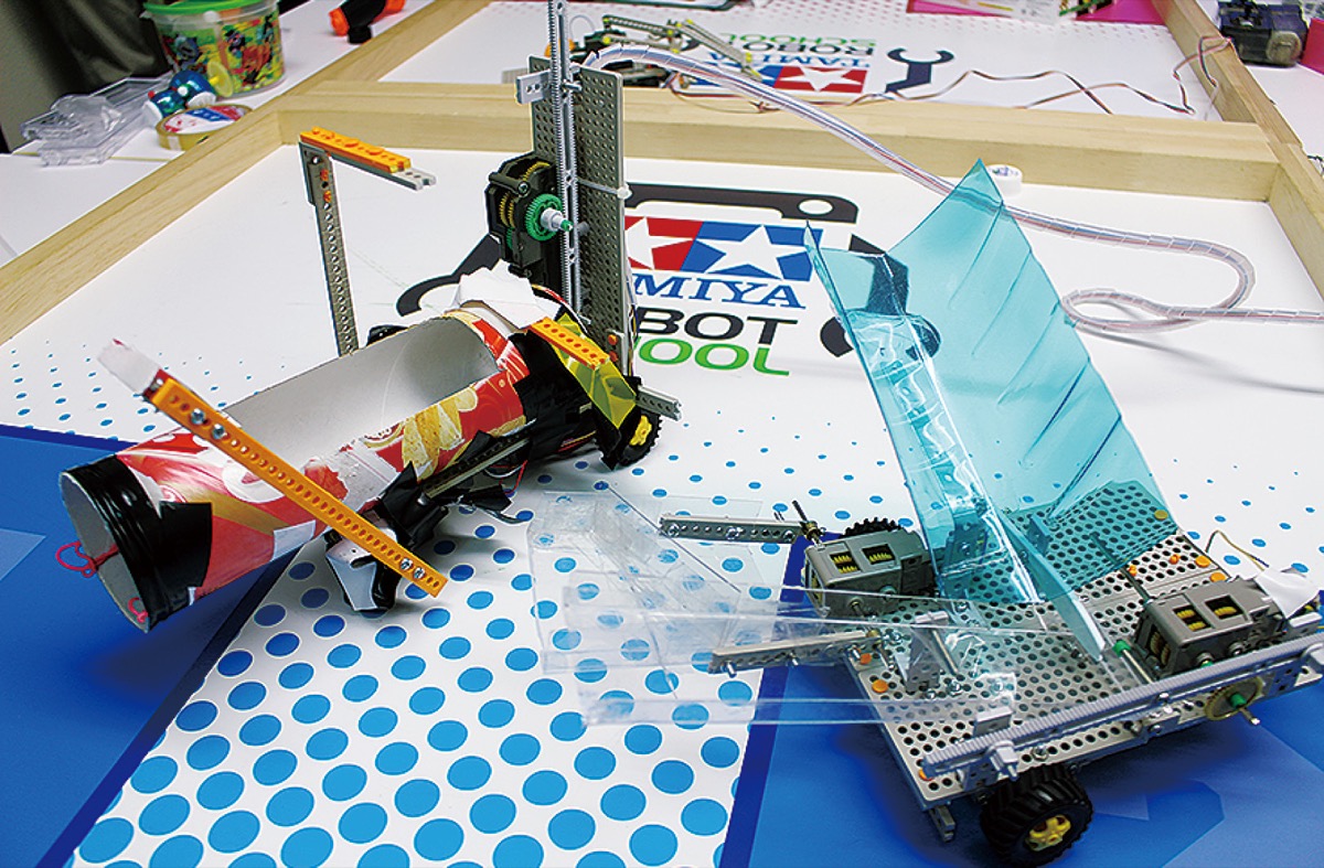 伊地知君の作品「大砲ドカーン」は、ロボットのアームに貼った両面テープでキャップを回収し、大砲に見立てたポテトチップスの筒型容器にキャップを詰め、ゴムの張力で相手陣地に発射するというもの。両面テープで回収する発想力とゴムの力で大量にキャップを飛ばす破壊力が最優秀の決め手となった。伊地知君は東京都八王子市立七国小学校の6年生。「自宅から一番近いプログラミングスクール」として、小学4年生から週1回、同スクールに通っている。最優秀賞の受賞に「嬉しかった」と照れ臭そうにはにかんだ。
