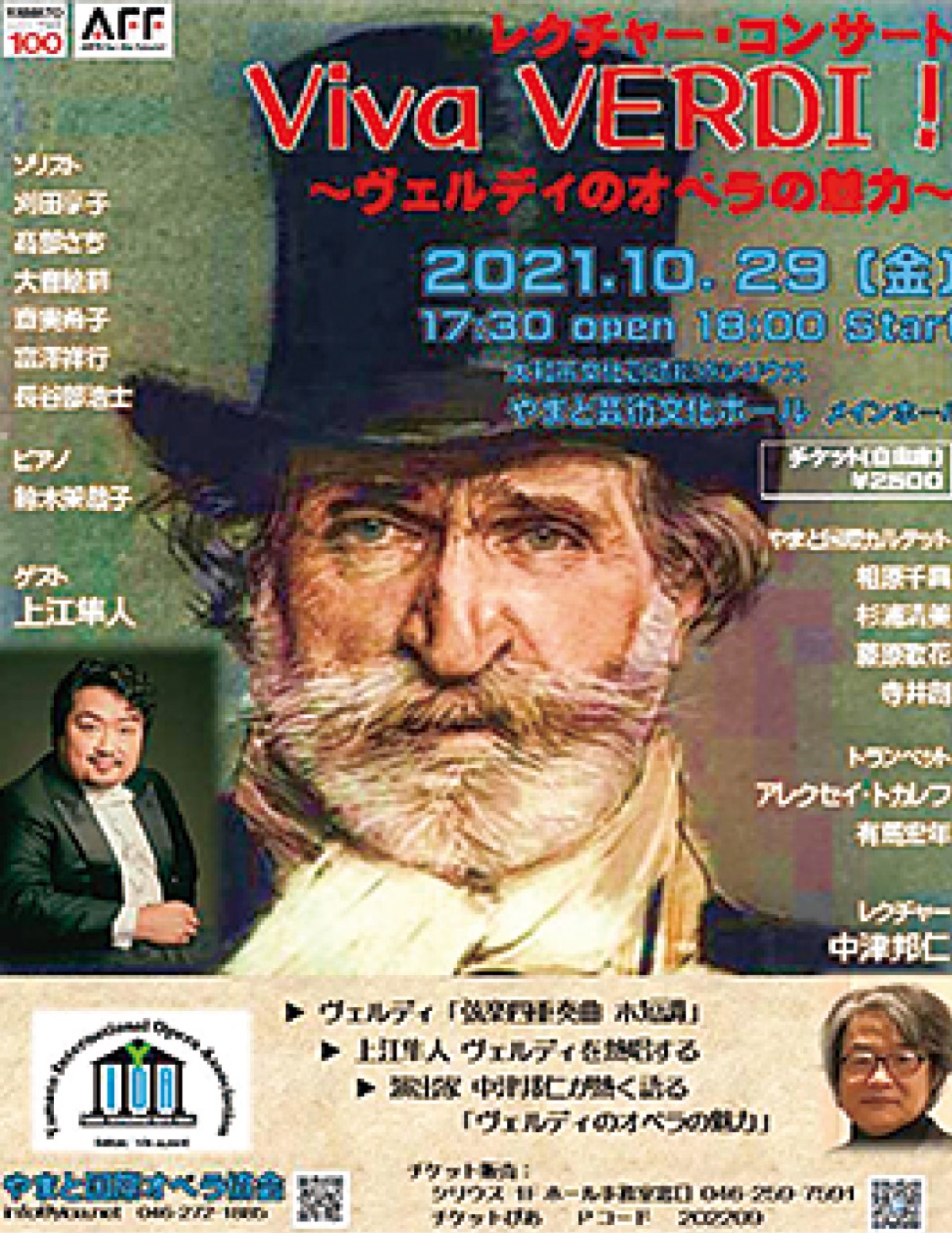 やまと国際オペラ協会主催の「Viva VERDI!〜ヴェルディのオペラの魅力〜」が10月29日(金)、シリウスメインホールで開催。演出家の中津邦仁氏がヴェルディのオペラを分かりやすく解説しながら、有名なオペラのアリアや重唱を協会ソリストが歌い上げる。午後6時開演。自由席2500円。(問)【電話】046・259・7591