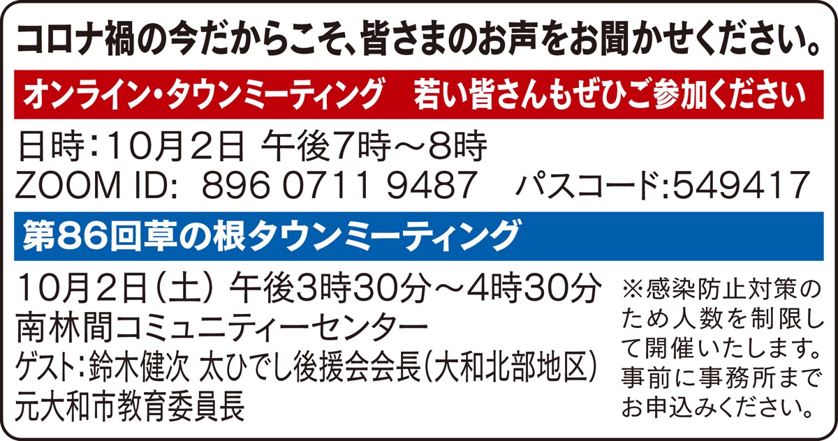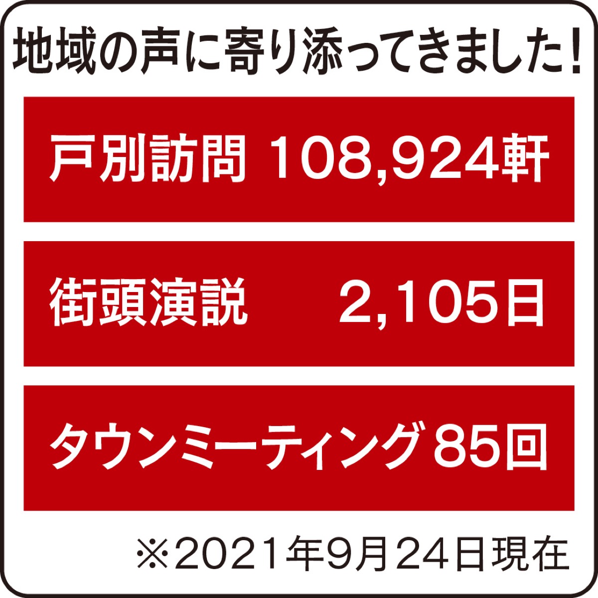 そして地元のすみずみまで歩いて地域の声に寄り添い、タウンミーティングを毎月開催して対話を重ねてきました。