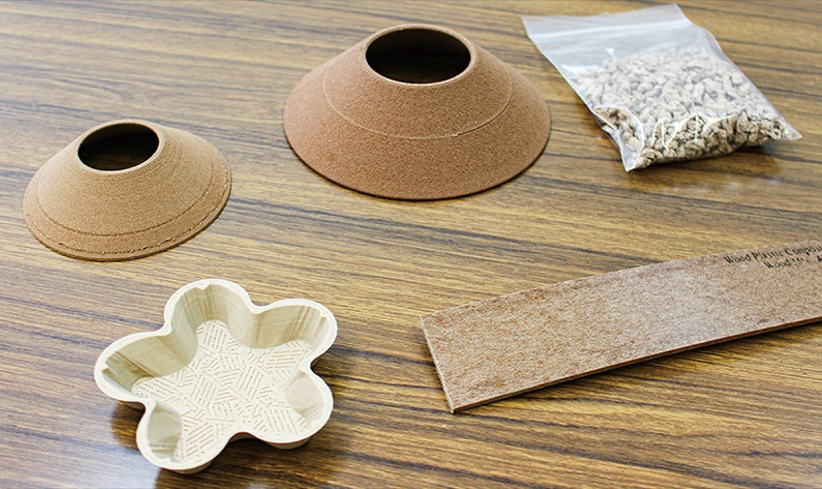 「バイオマスプラスチック」は、木材や竹などのバイオマスとプラスチックを融合した素材で、混合する種類や割合を変えることで、石油由来のプラスチック製品の削減と、これまで廃棄されていた未活用天然資源の利用が可能になるなど「アップサイクル」につながる素材としても注目されている。