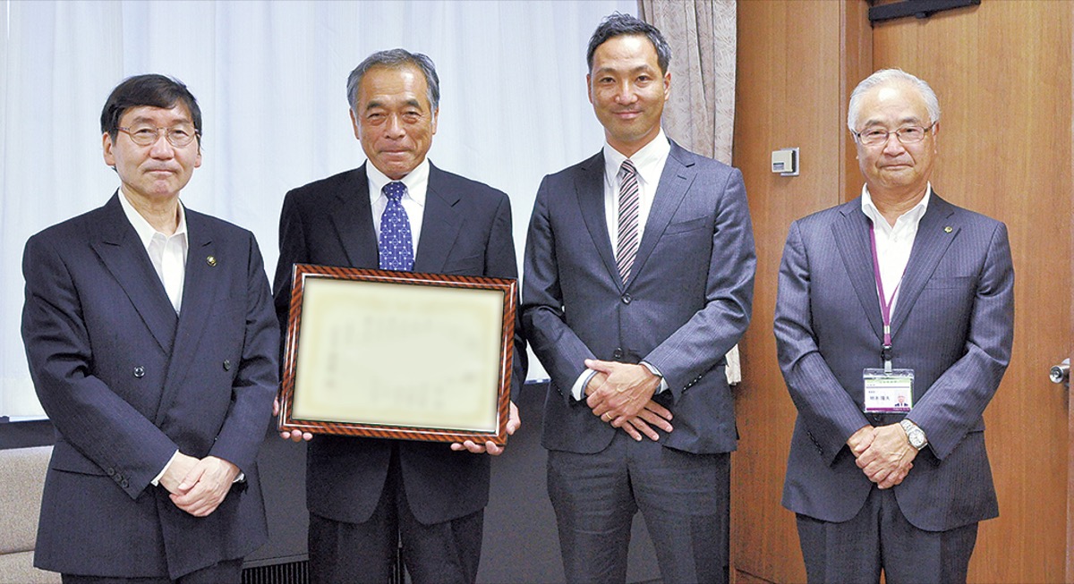 創立50年を迎えた相模緑建株式会社(吉川章代表取締役会長)が大和市教育委員会(柿本隆夫教育長)に50万円を寄付し10月1日、大和市役所で大木哲市長から感謝状が贈呈された。