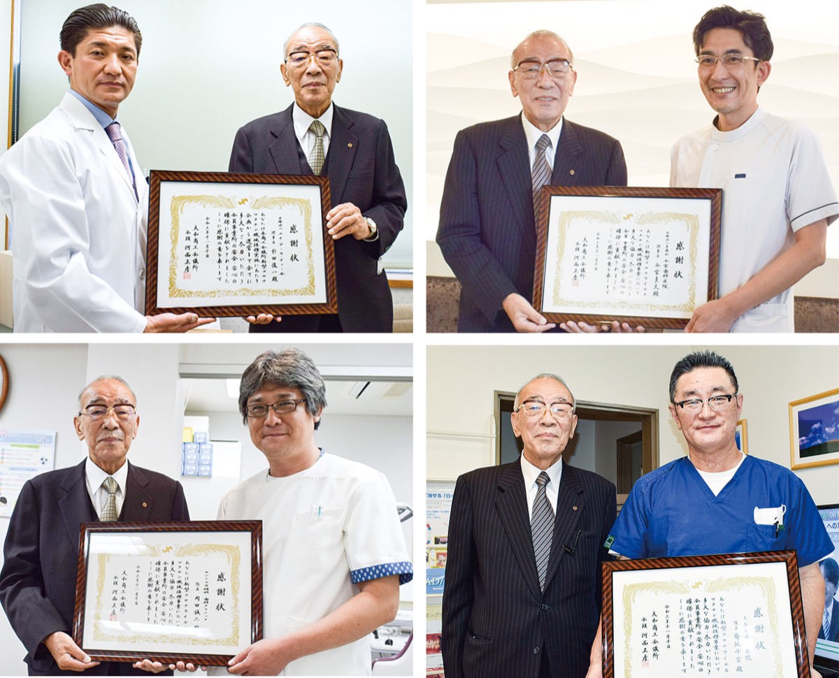 大和商工会議所(河西正彦会頭)は、同所で実施した新型コロナワクチンの職域接種に協力した4人の医師、歯科医師に感謝状を送った。