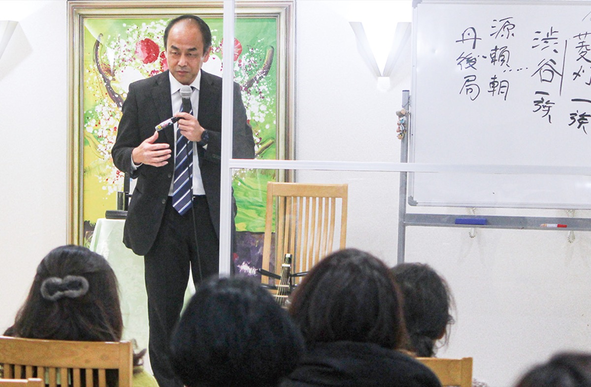 6回目となる今回は、戦国武将として知られる島津義弘を奉る精矛神社宮司で加治木島津家13代目当主・島津氏が自身の家系を基に鎌倉時代に高座渋谷を治めていた渋谷氏や現在放映中の大河ドの話を交えながら講演。途中自ら薩摩琵琶の演奏も行った。