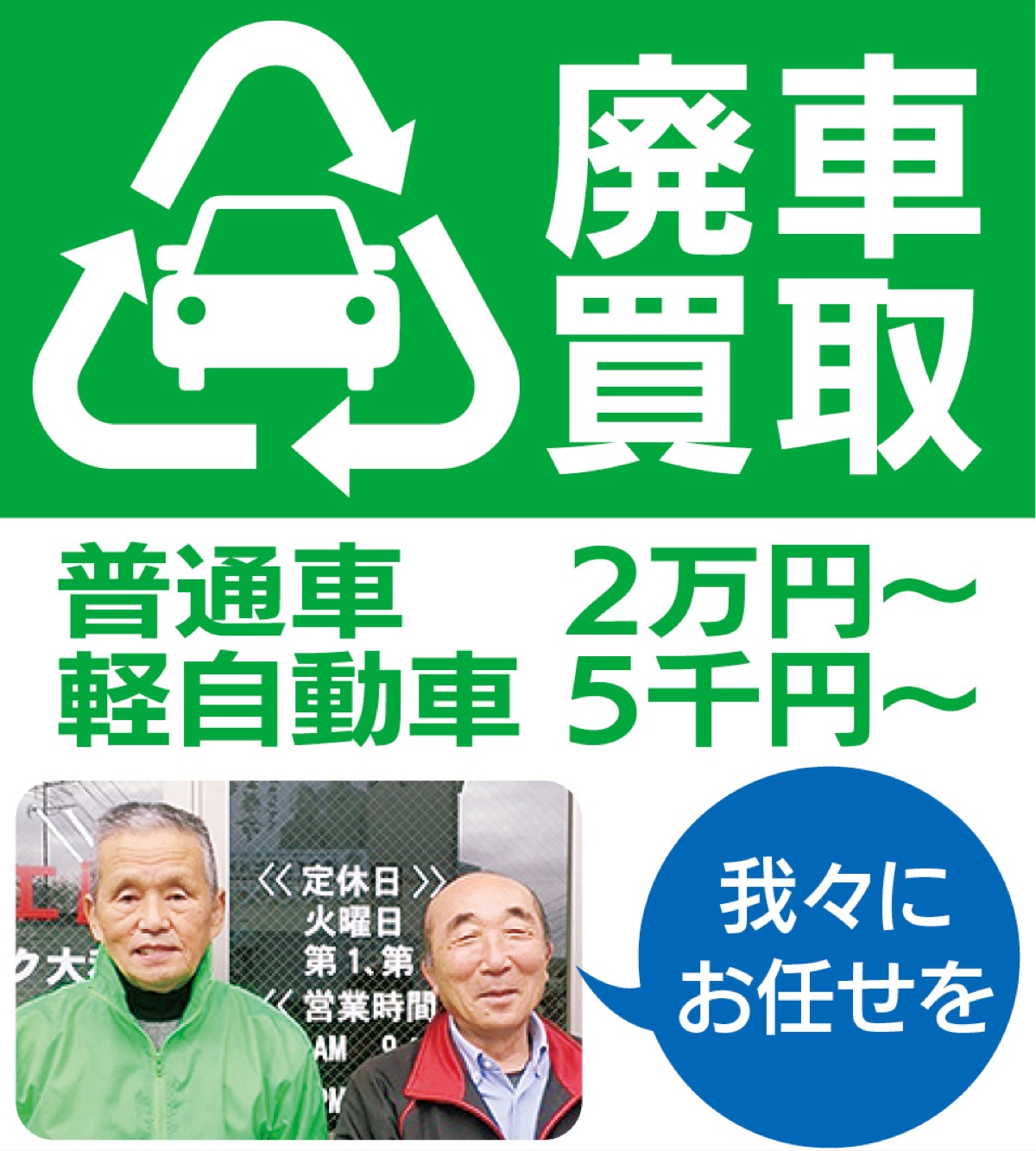 「処分に困った要らない車が…」「廃車に費用はかかるのかしら?」など、免許返納や乗らなくなった車の処分なら深見の光が丘交差点にある「愛車工房 カードック大和」にお任せを。 3月までに車を売却すれば次年度の自動車税はゼロに。普通車は最低価格2万円〜、軽自動車なら5千円。10万Km以上でも思わぬ価格がつくケースも。面倒な手続きも全て無料でお任せを。