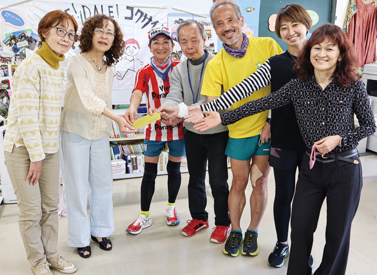 大和市内に住む外国人を中心に、マラソン大会で1Km走る毎に10円を寄付するチャリティランを実施しているランニングチーム「ダレダレコクサイ」(楠瑠美子代表)が3月19日、子育て支援を行うNPO法人チャイルドケア(永井圭子代表)に寄付金を贈呈した=写真。