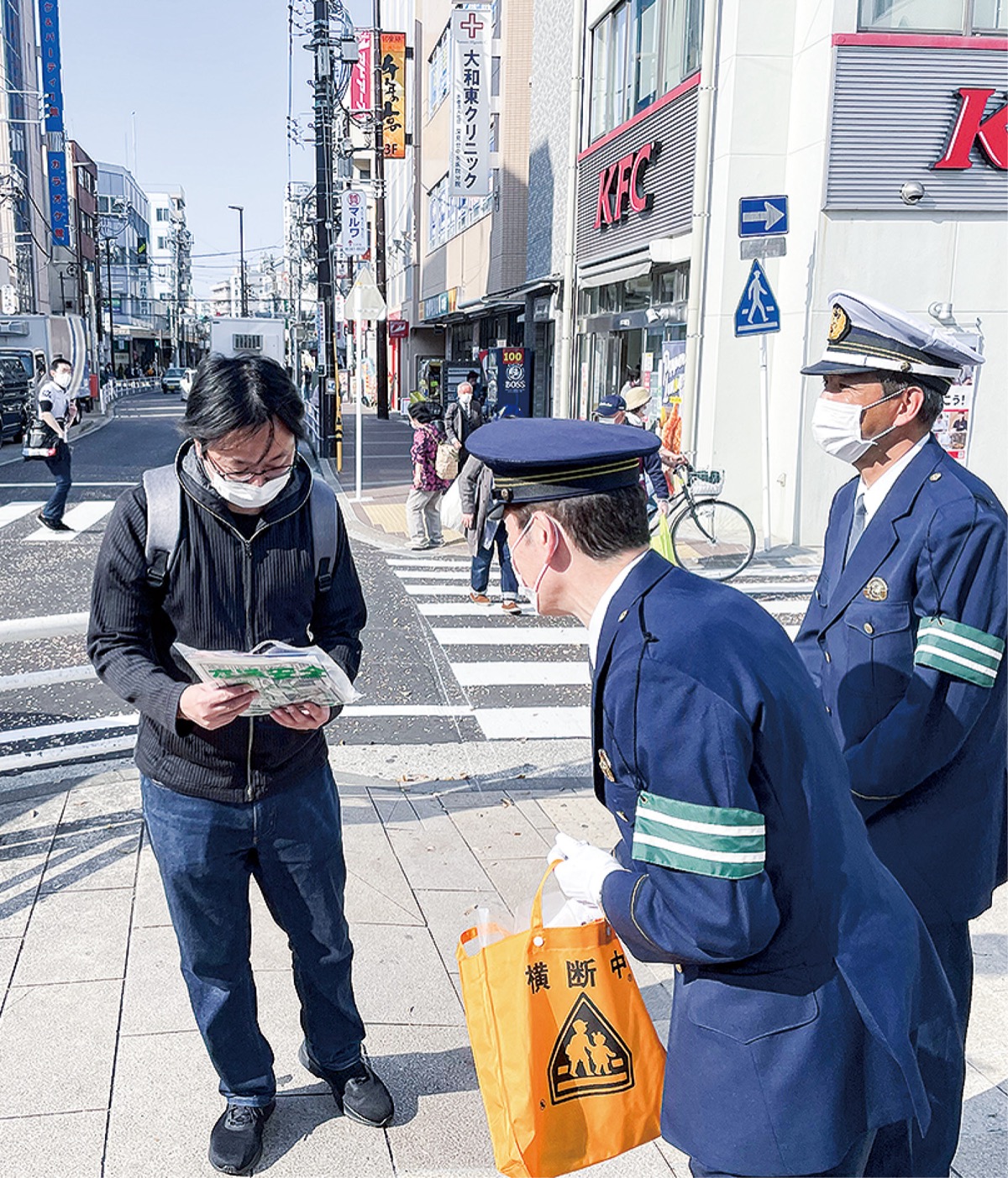 「春の全国交通安全運動」の一環として8日、大和駅プロムナード東側で街頭キャンペーンが実施された。市や大和署のほか、大和綾瀬交通安全協会、大和警察署管内安全運転管理者会、市交通安全母の会連絡協議会などからおよそ30人が参加。歩行者らに交通安全を呼びかけた。