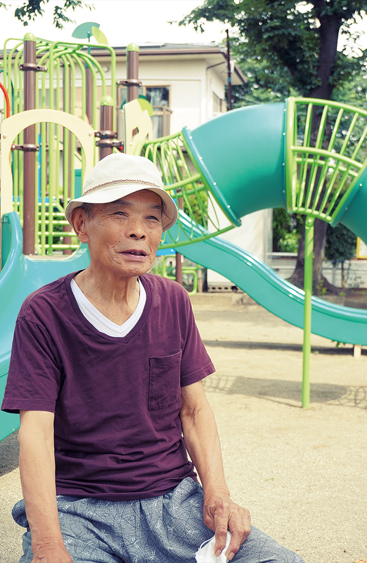 春には園内に植えられた桜10本から散った花びらを掃き清め、花壇の雑草を取り除く。夏には毎日、土埃が周囲に広がらないように水を撒き、秋には落ち葉を片付ける。60歳で定年退職し、健康のための毎日の日課と通うものの、近年は腰を痛め思うように清掃活動に取り組めない。