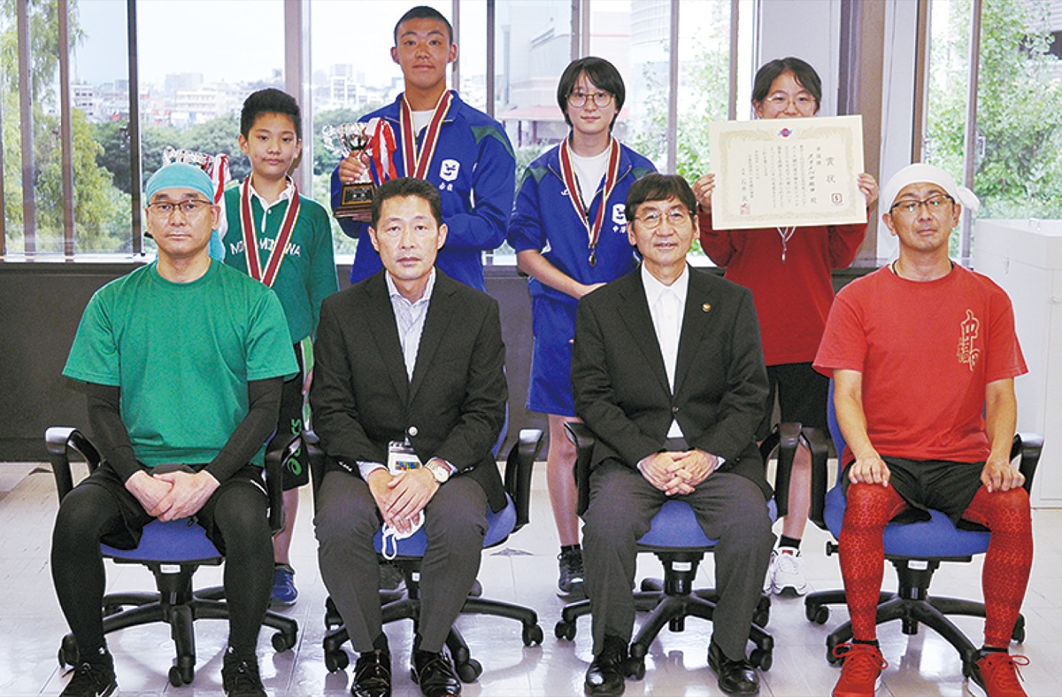 表敬訪問の席で大木市長は「全国で優勝、優勝、準優勝は快挙。皆さんの頑張りが結果につながった」と選手たちをたたえた。