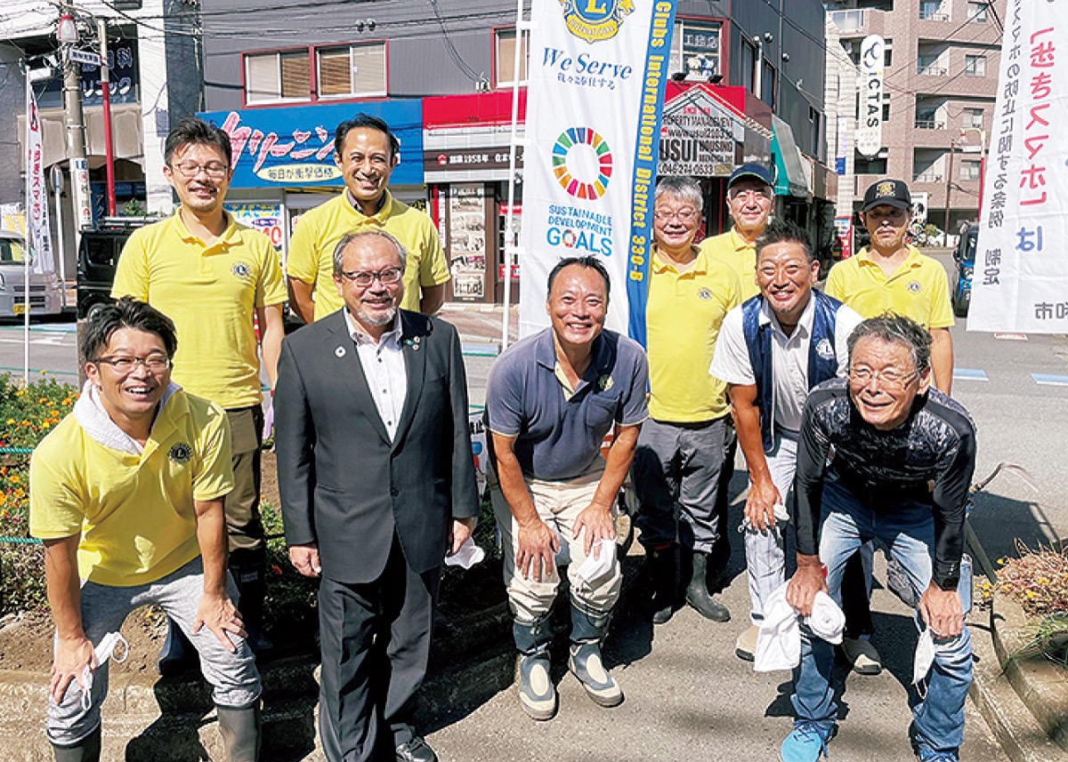 大和リバティライオンズクラブ(山岸真樹会長)が2日、南林間駅の西側にある花壇の除草作業を行った。