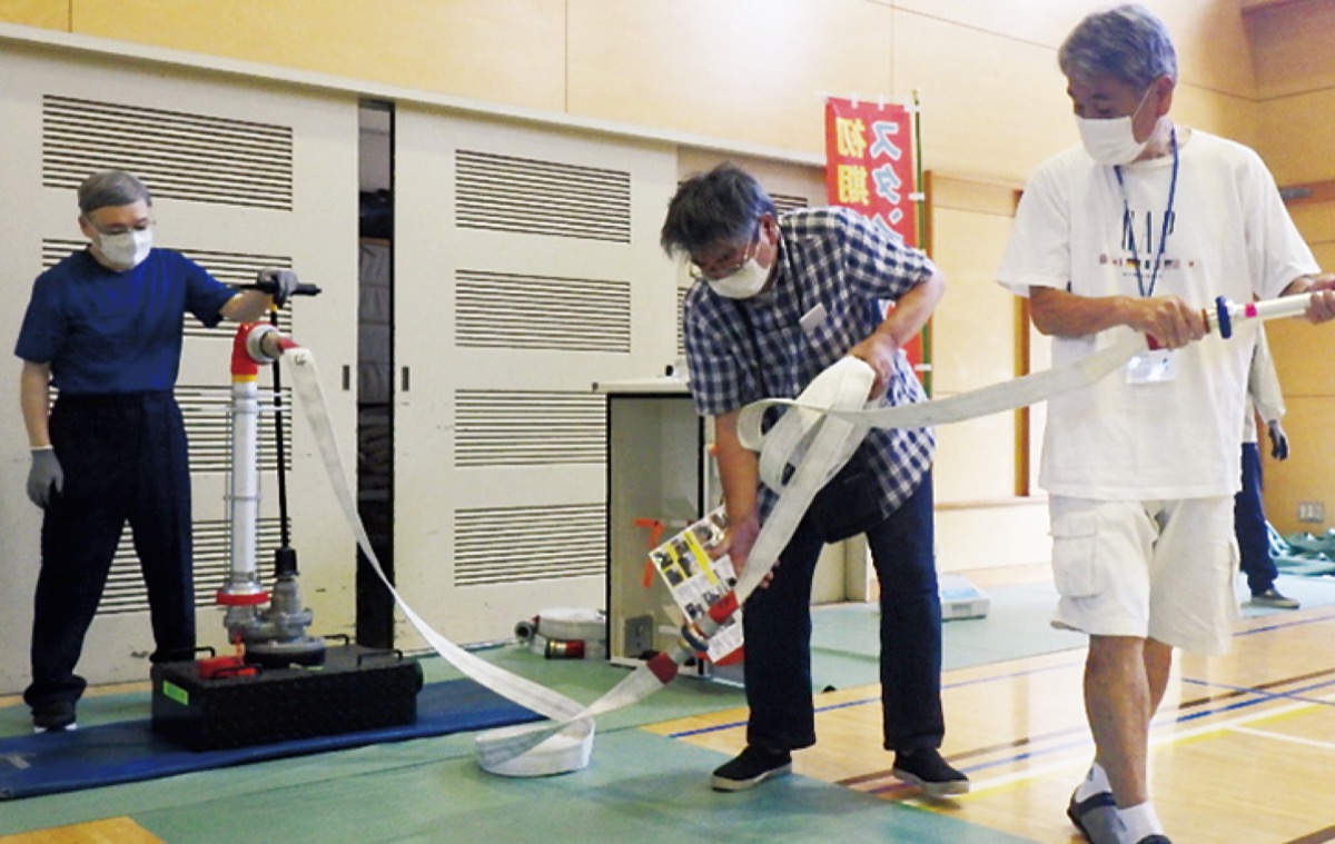 初日の「基本編」はつきみ野中学校で行われ、資機材の導入や放水を体験。10月1日は「応用編」として、やまと防災パークで実施、参加者らは初期消火や延焼防止の方法を習得していった。