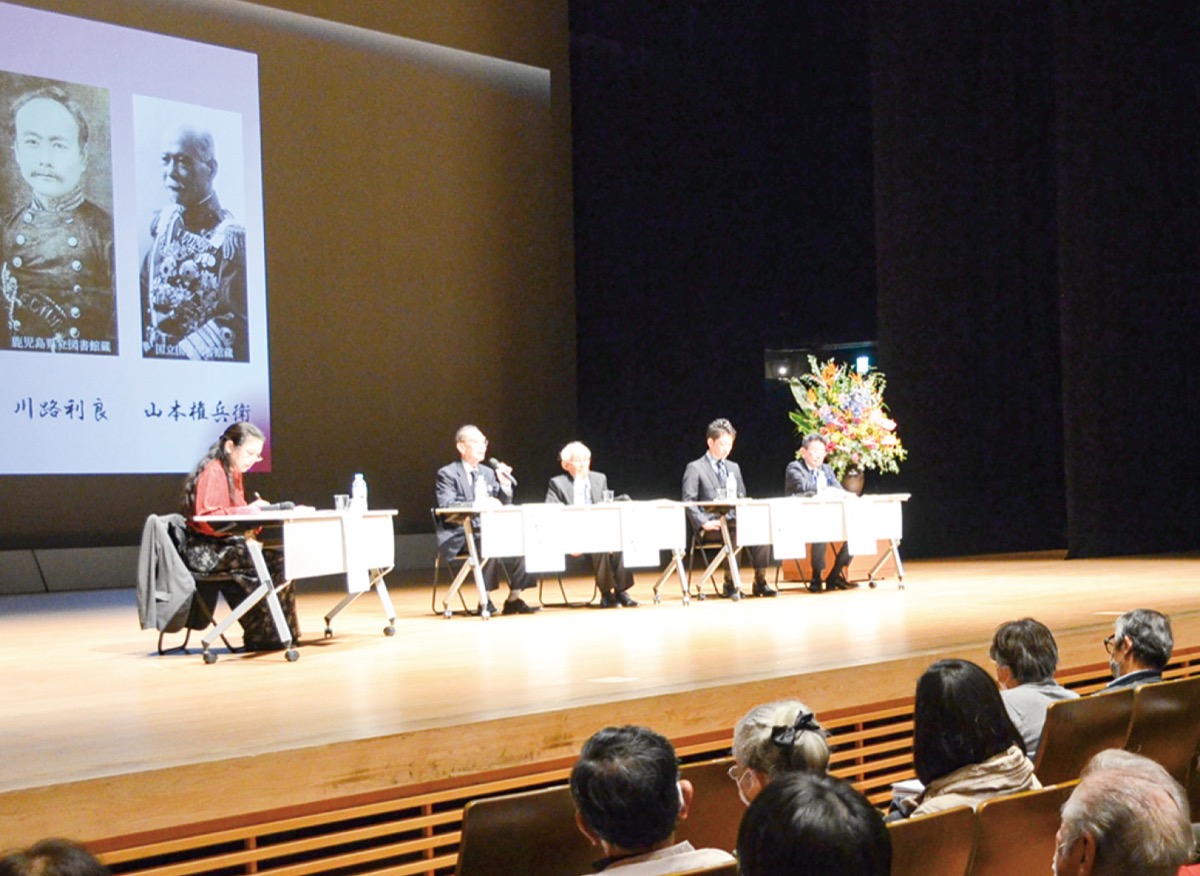 登壇者たちは祖先の生きた時代やエピソードを順に紹介。客席ではメモを取りながら熱心に耳を傾ける姿が多くみられる中、山本さんは権兵衛について「列強の侵略から国を守るために何が必要かというグランドデザインを描いた人物」と解説していた。