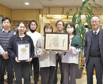 玉城久子施設長は「普段から職員や介護スタッフらが入居者にとって良いと思うことを積極的に行おうと心掛けていることが高く評価された。みんなで喜びを分かち合った」と話した。