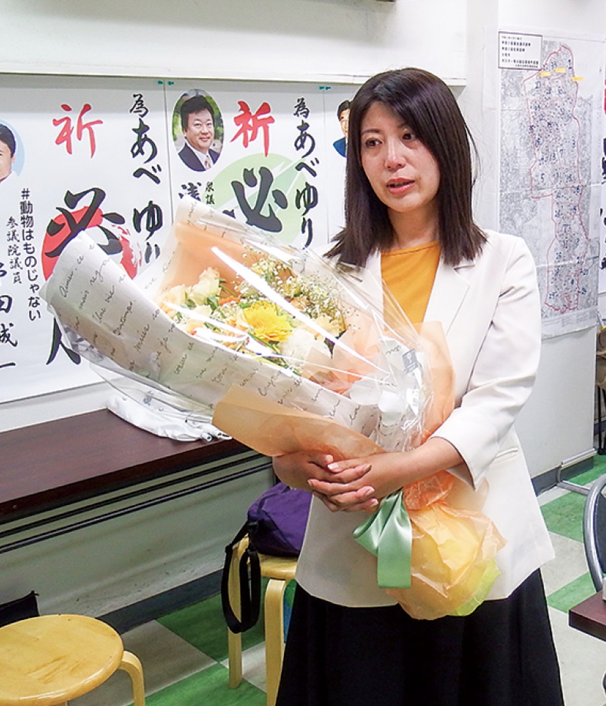 選挙初挑戦の阿部氏は11時50分、落選の報を受け支援者にあいさつ。「投票してくれた1万3272人の方々に感謝の気持ちでいっぱい。走り切った選挙活動になった。本当に悔しいが、当選した3人には頑張ってもらいたい」と話した。