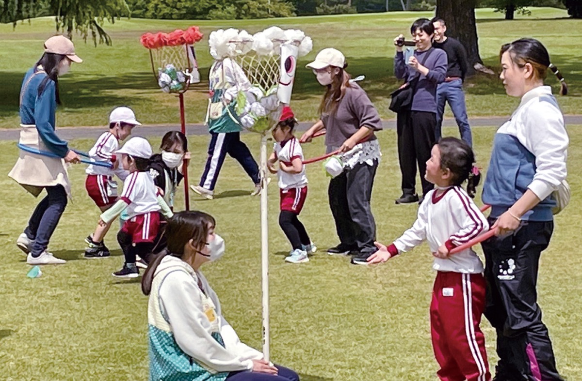 当日は、2〜6歳の全園児と保護者らおよそ300人が参加し、広い敷地でのびのびとフォークダンスや玉入れなどをして楽しんだ。