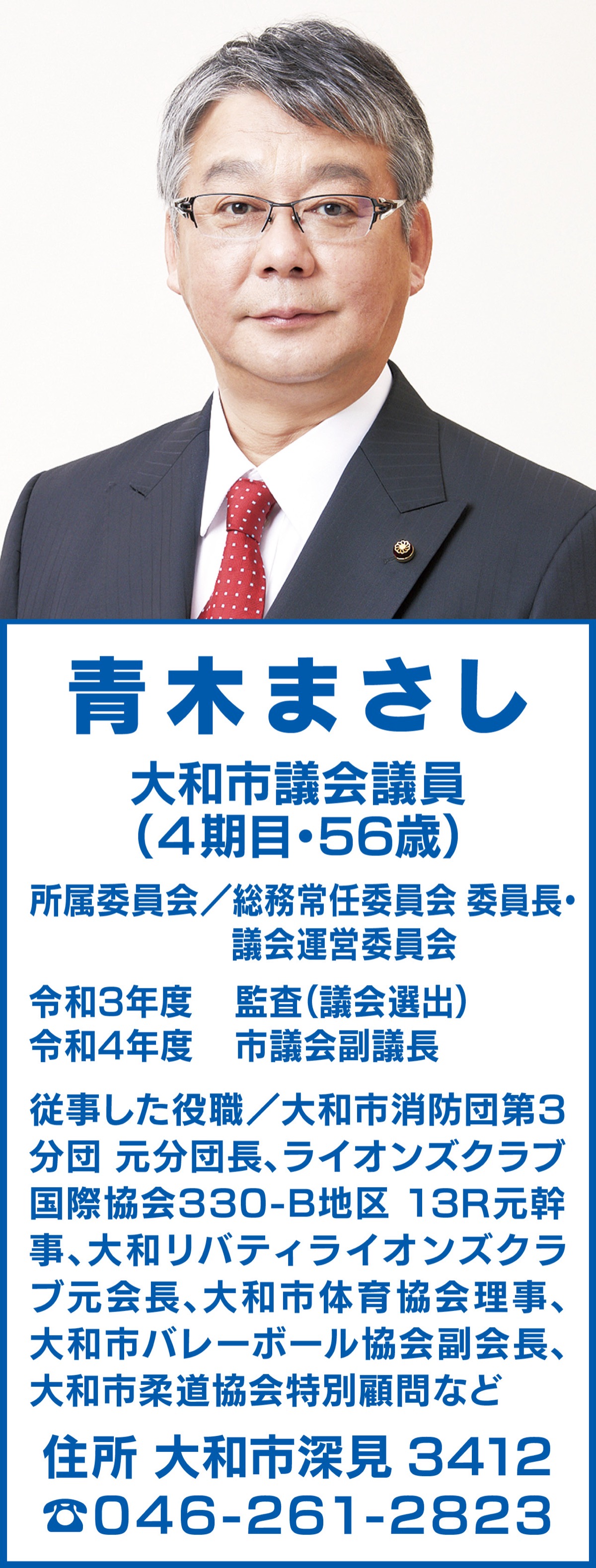 今後も、安心で安全な地域づくりに向かって、市議会議員として、消防団員として、大和市民として全力を尽くせればと思っております。