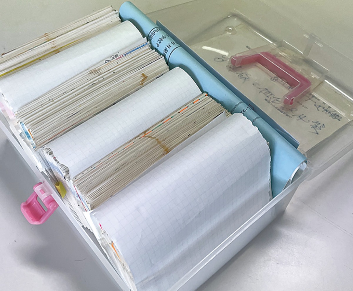 ハガキは、プラスチック製の箱に輪ゴムで束にして保管。経年劣化を避けるため、高島さんらは輪ゴムを定期的に取り換えるなど大切に扱ってきた。その甲斐あって20年経った今も、ハガキは純白のままだ。