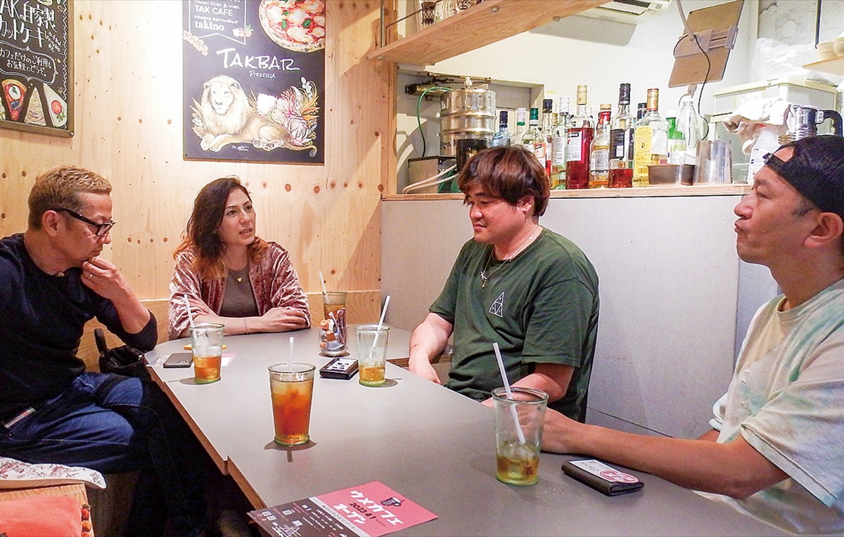 中央林間のイタリアンレストラン「タクバル」に集まったのは、同店のオーナー上村匠さん(41)、南林間のホルモン店「珍満」の大将・菊地努さん(49)、今年4月に福田で「ウメカフェ」を新規オープンした梅澤英一さん(55)と妻の儒里さん(47)。4人は年齢が近いこともあり、日ごろから付き合いがある。