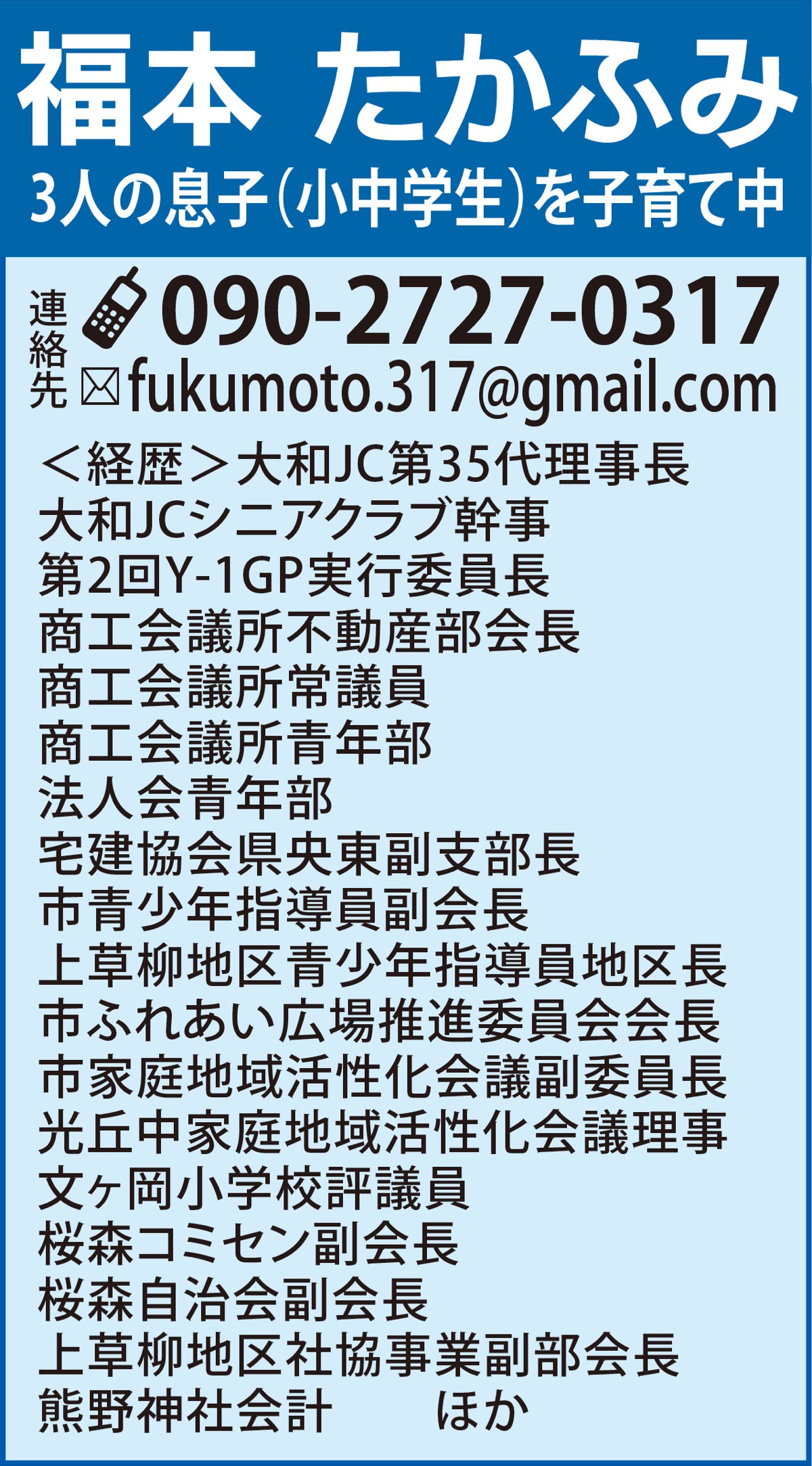 大和市議会議員 福本たかふみ