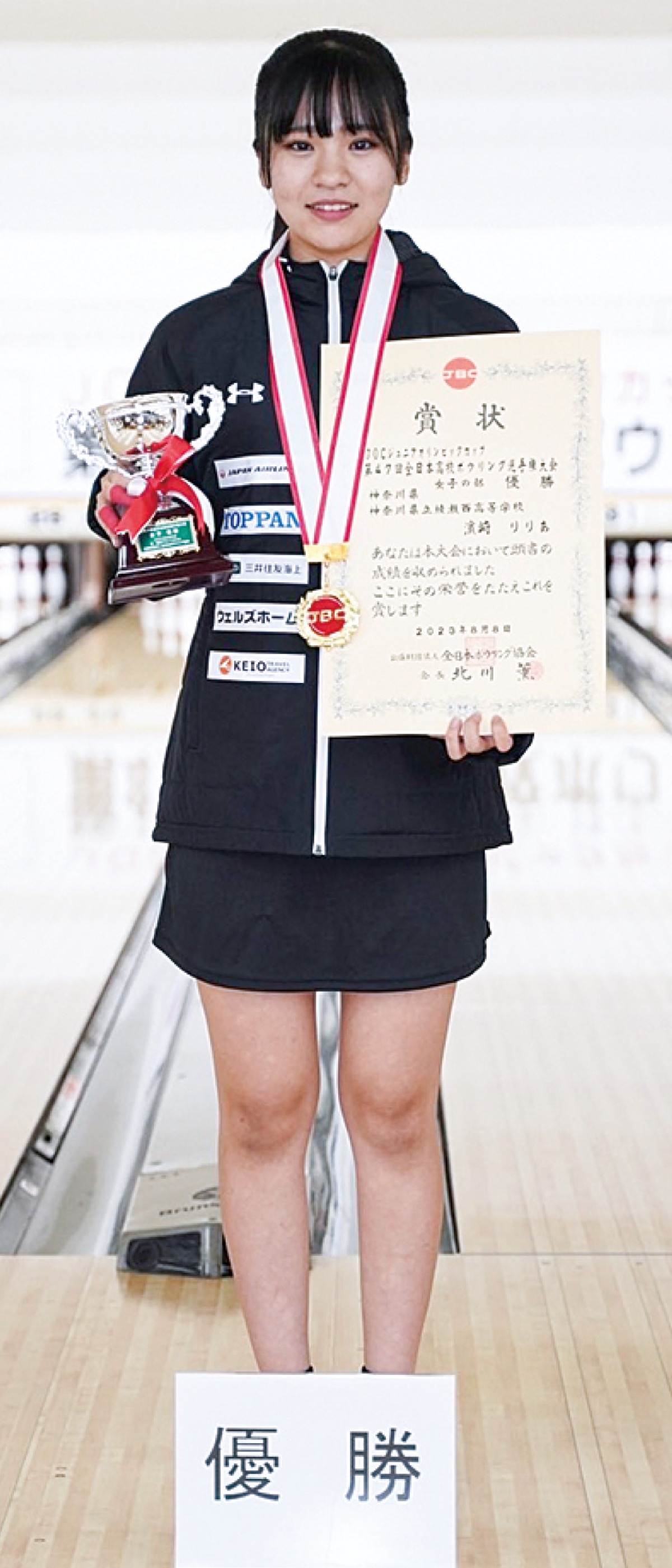 桜ヶ丘ボウリングセンターのアマカスアカデミーに通う濱崎りりあさん(綾瀬西高3年)がこのほど、愛知県で開催された「JOCジュニアオリンピックカップ第47回全日本高校ボウリング選手権大会」(女子の部)に出場し、初優勝に輝いた。大会は12ゲームの合計スコアを競い合うもので、りりあさんは合計スコア2600(平均スコア216)を記録した。